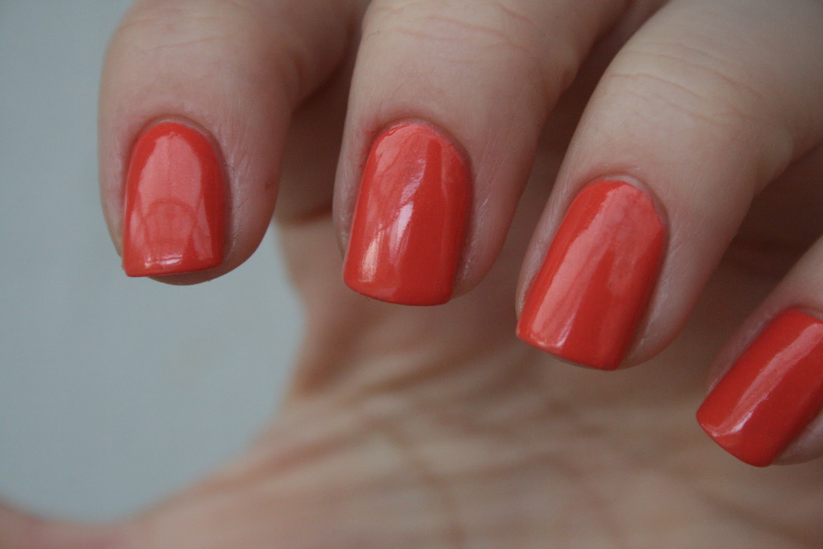 This is a shimmering coral toned polish. It has a subtle gold shimmer that gives the polish a depth. I like it. Not all coral tones works with my pale skin tone, but this does.